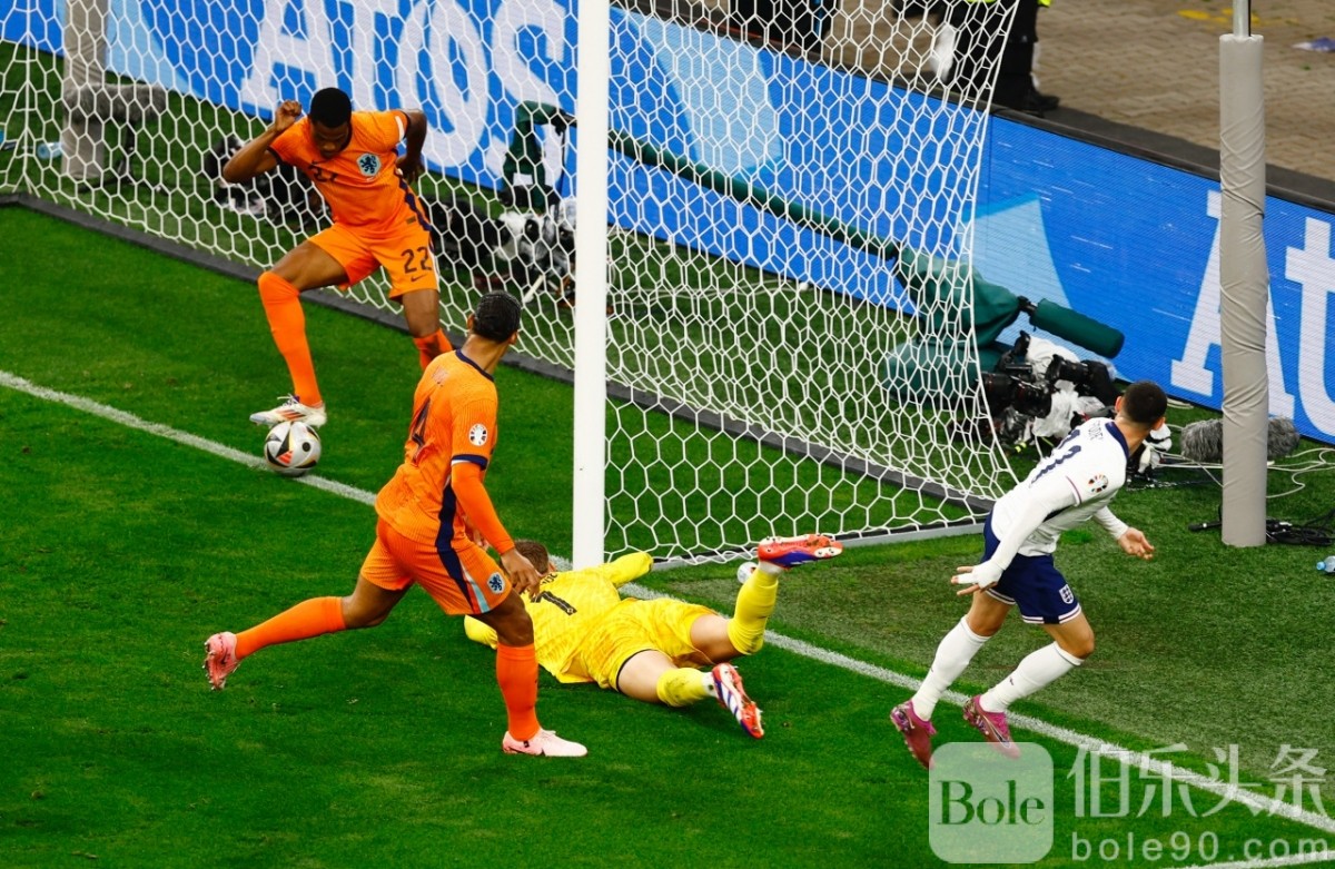 下半场,两队打得更加谨慎,制造的威胁机会也较少。荷兰队对高空球抱有很高的期望,范戴克的头球被皮克福德扑出。