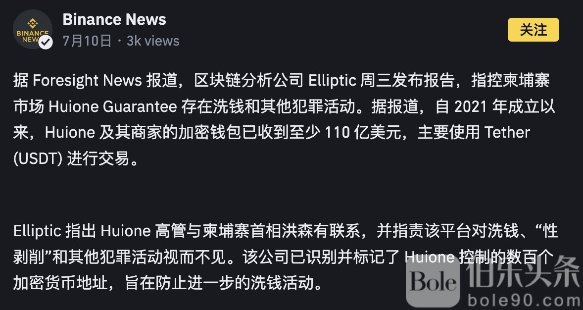 昨日,币安官方发布新闻称,柬埔寨市场汇旺(Huione)数百个加密货币地址被标记为涉及诈骗和洗钱,总金额高达110亿美元。汇旺作为柬埔寨乃至整个东南亚华人灰产圈子最大的第三方金融体系,其业务涵盖换汇、担保、银行等多种金融结算,被誉为“灰产支付宝”。若消息属实,标记涉及金额高达110亿美元的加密货币地址,对整个灰产行业的金融秩序将造成重大打击。
