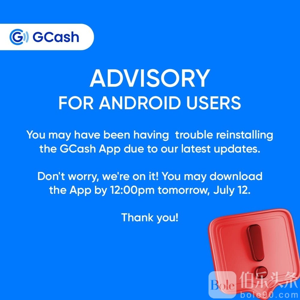 据GCash透露,受影响用户预计从7月12日星期五中午12点后即可重新下载其应用程序