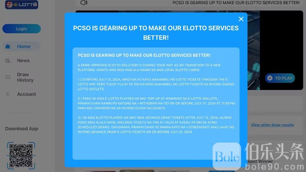此外,PCSO提醒通过e-lotto赢得奖金的用户,应在7月31日之前将奖金从e-lotto钱包中提取并转移到其GCash账户。