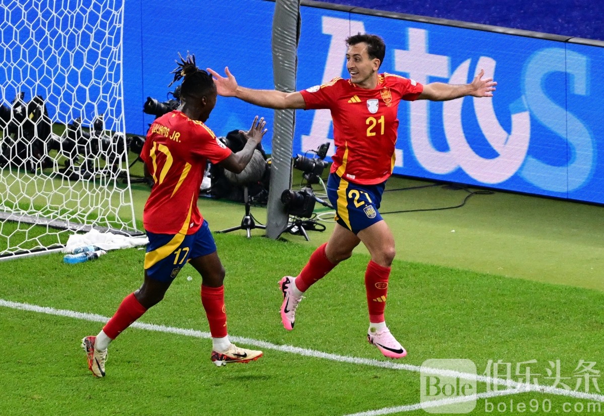 - 西班牙进球:尼科·威廉姆斯(47),米克尔·奥亚萨瓦尔(86)