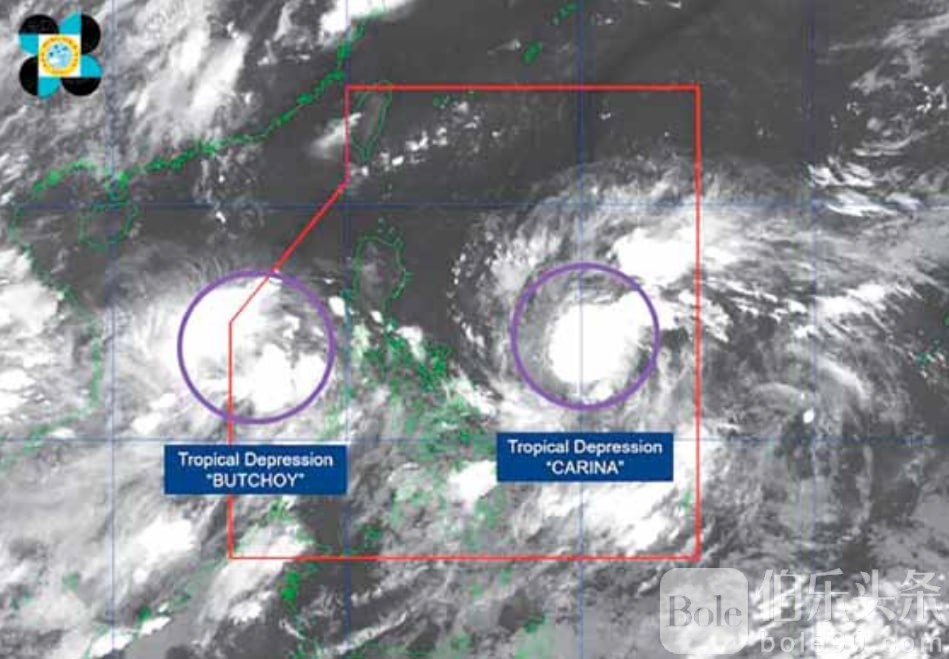 伯乐头条专讯:根据国家气象局7月19日深夜公告,菲律宾责任区内观察到两个热带低气压:”布吹“、”加仁娜“。