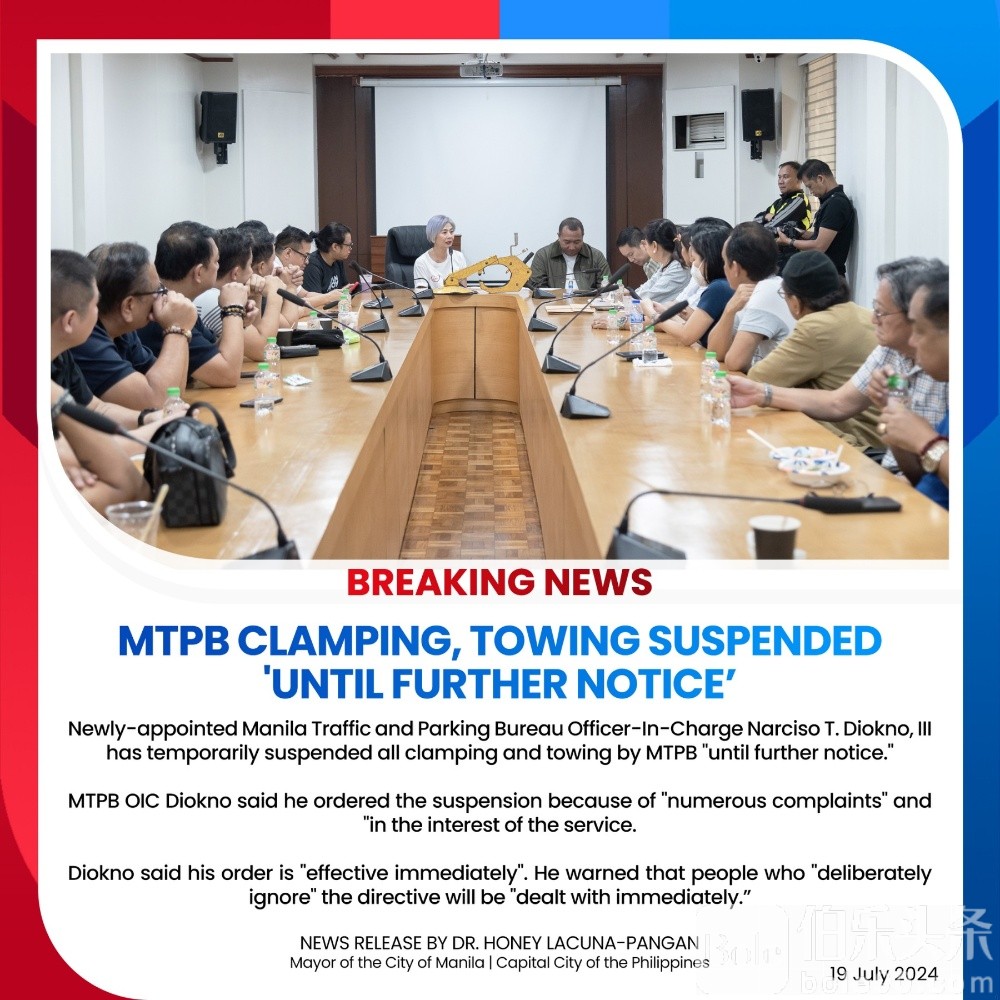 新上任的MTPB主管Narciso T. Diokno发布了这一决定。他指出,暂停这些活动是因为收到了大量的投诉,并且此举是为了更好地服务市民。