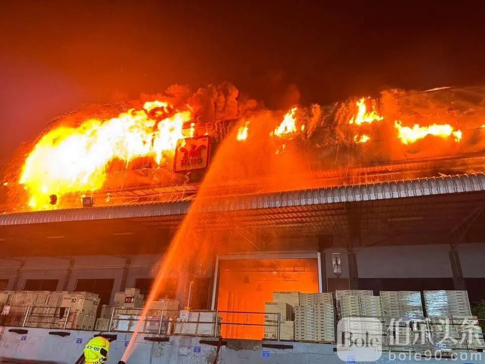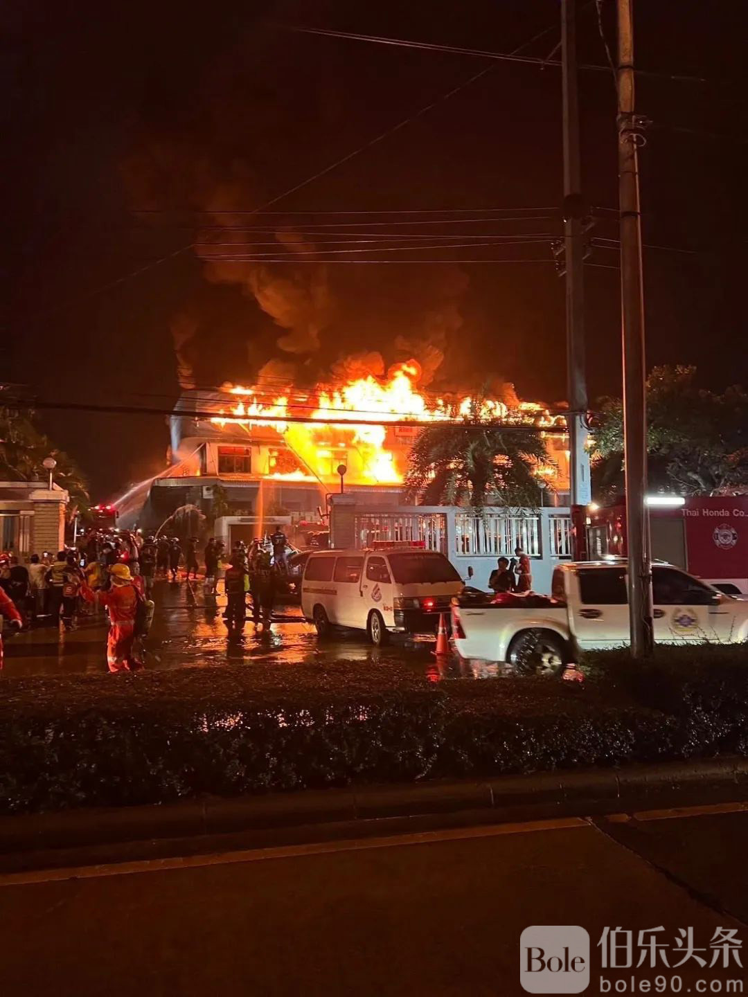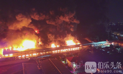 伯乐头条专讯:据多家泰媒消息,5月11日,泰国曼谷叻甲挽区Chalong Krung路Chalong Krung 55巷某仓库发生火灾,火势十分猛烈。消息称当天19:44左右,整个仓库已全被大火吞噬,当晚22点左右,火势进一步蔓延并造成建筑物倒塌。