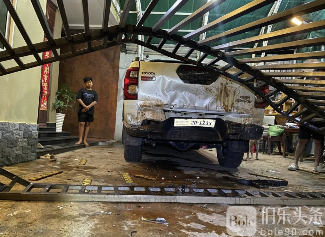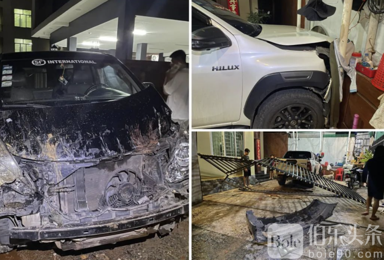 事件发生在5月6日凌晨3点40分,地点位于西哈努克市第三分区。一辆黑色现代STAREX面包车突然失控,直接撞向一户民宅的大门,并波及停在院内的一辆2022款白色丰田RALLY,造成车辆与围墙严重受损。