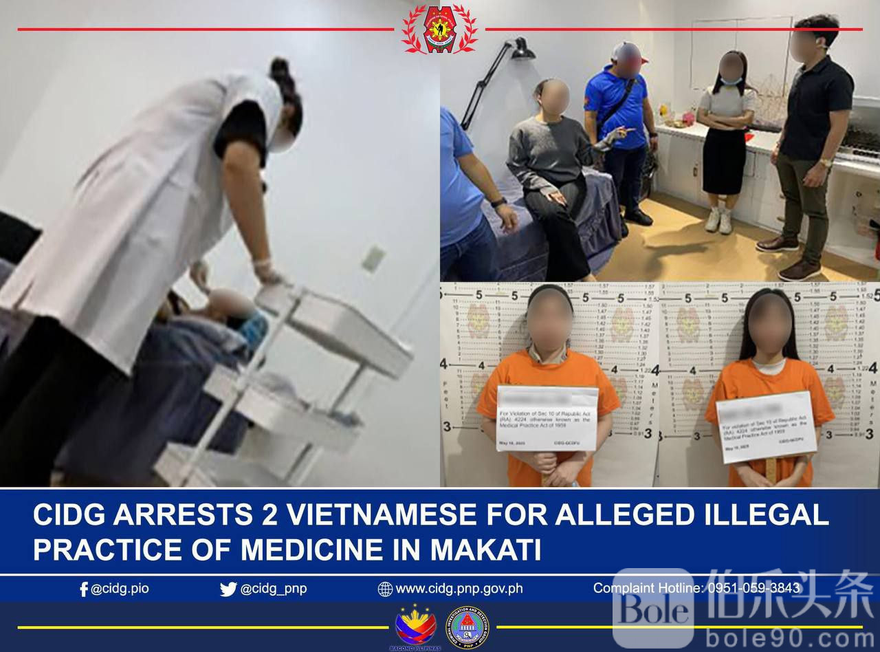 伯乐头条专讯:菲律宾国家警察刑事侦查组(CIDG)于2025年5月10日展开执法行动,在马卡蒂市一处美容诊所内逮捕两名越南籍女性,指控其在未具合法执业资格的情况下从事整形相关注射与医疗行为。