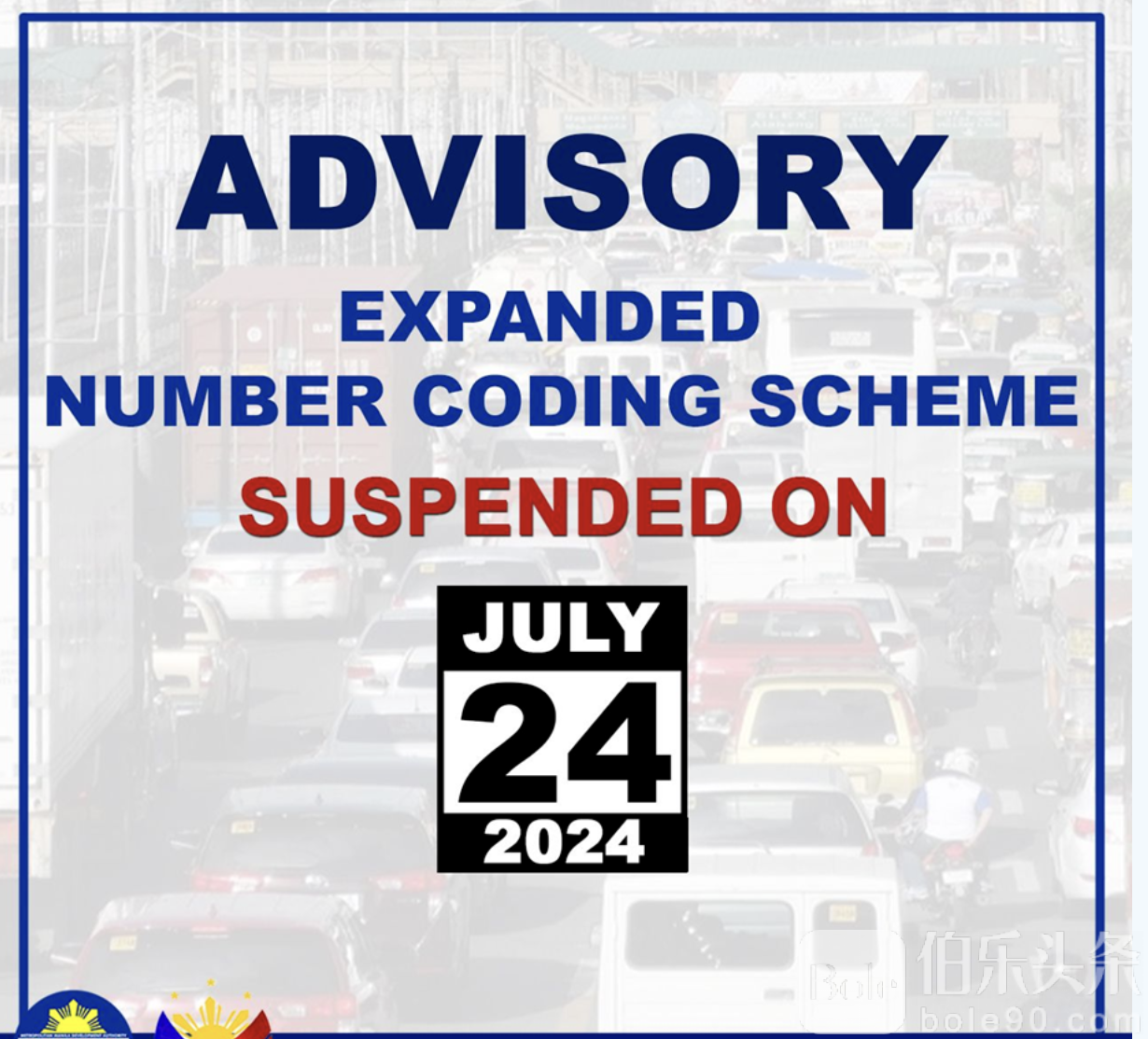 MMDA宣布:2024年7月24日暂停车辆限号