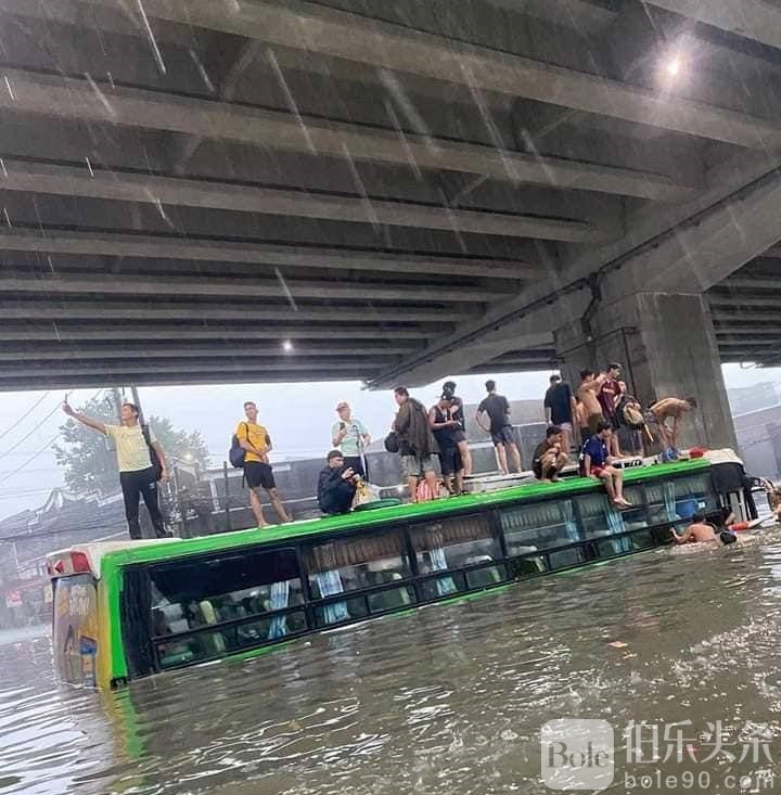 从图上我们可以看出,这辆公交车的一半高度都已经淹没在水中,车内已经不安全,许多乘客都爬到了车顶。