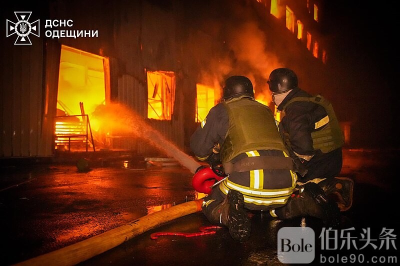 乌克兰紧急服务部门7月24日提供的照片显示,俄罗斯无人机袭击乌克兰伊兹梅尔(Izmail)一处地区引发火患,消防员忙着灭火。