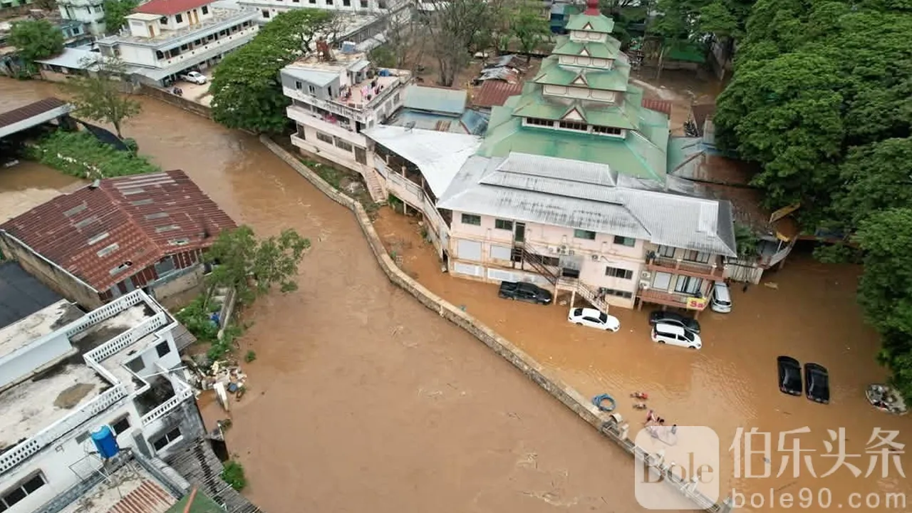 5月24日深夜,清莱府湄塞区突降暴雨,导致赛河水位暴涨,河水决堤冲入边境贸易重地——赛隆欢乐市场,淹水最深处达1米,混杂泥浆的洪水冲走了防洪沙袋并造成倒塌。包括Ban Ko Sai、Ban Mai Lung Khan和Ban Pha Kwai Mueang Daeng等社区在内,多地沦为泽国。村民连夜搬运财物,老人和病人紧急转移。当地官员紧急设立四个临时疏散点,并暂时关闭第一座泰缅友谊桥。