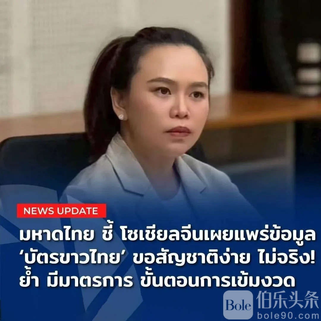 这条贴文最早由拥有超过20万粉丝的中国资讯账号“爱中”于5月22日发布,引发大量转发与讨论。泰国内政部发言人黛素丽·代索拉那昆于5月24日正式回应称:该内容严重失实,具有误导性,特别是关于“白卡可用于入籍”“拥有买房和工作权”的说法,完全歪曲事实。
