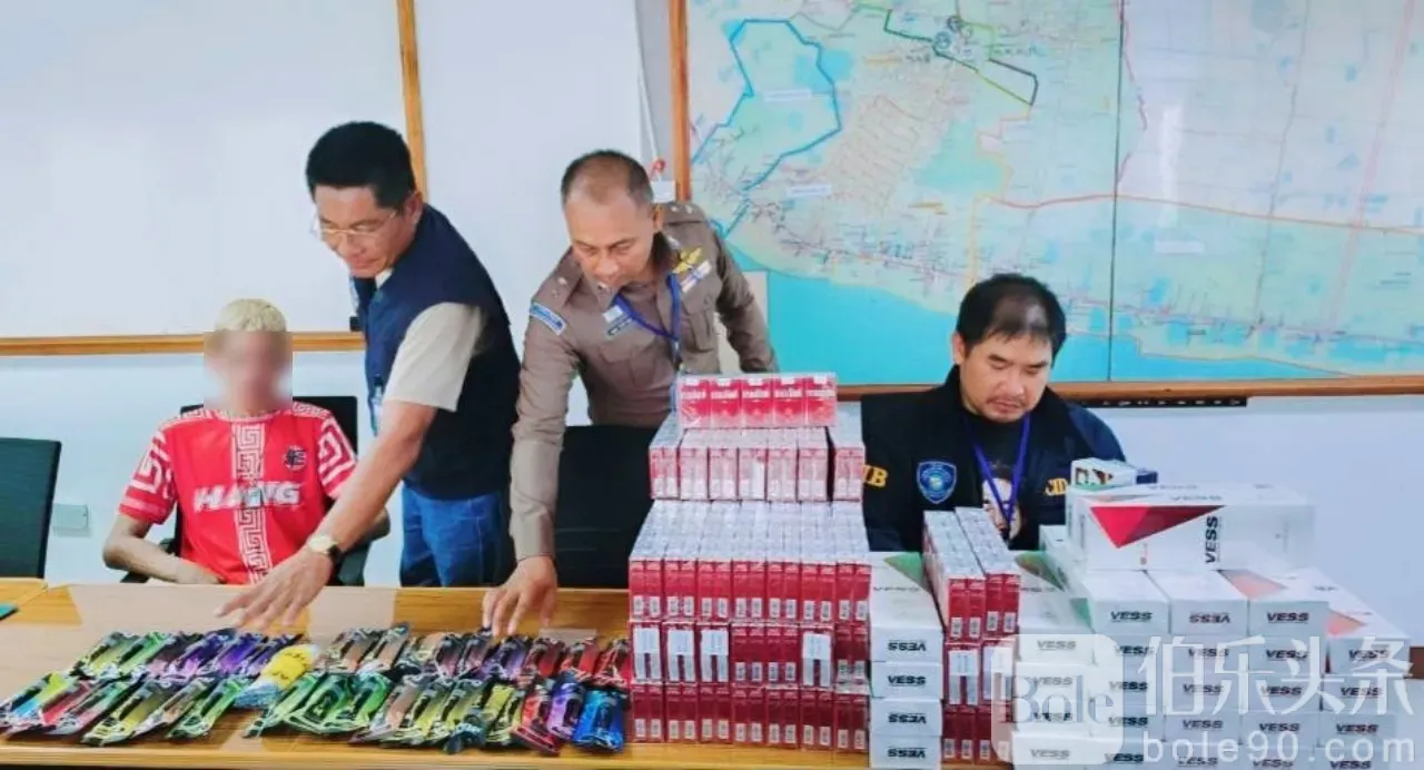 伯乐头条专讯:2025年5月25日,泰国警方突袭北榄府芒县一处住宅,逮捕一名22岁的青年——皮瓦特·彭汶(Piwat Phuengboon),罪名是非法销售电子烟并进行高利放贷。据警方调查,他靠贩卖电子烟和外国香烟,每月获利数万泰铢,此外还暗中向青少年提供高息贷款。
