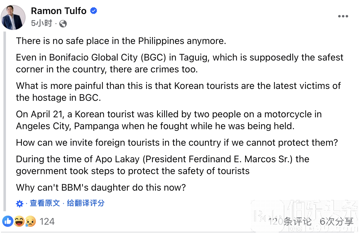 菲律宾媒体人都忍不住发牢骚:我曾经以为,菲律宾还有那么几个地方可以让我安心生活。但现在,我真的开始怀疑这个国家是否还有任何一处是安全的。