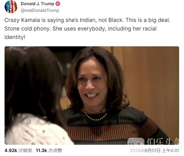 这次大会后,特朗普还在名下的Truth Social上发布了哈里斯教做印度菜的视频,还说““疯狂的卡玛拉说她是印度人,不是黑人。这可是大事。无情的骗子,她利用了所有人,包括她的种族身份!”