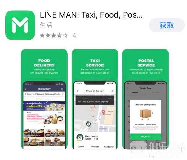 Line Man是Line通讯旗下的外卖软件,所以说如果你有Line账号的话,就不用另外注册Line Man账号了。除了能点外卖,还提供打车、送包裹、买便利店商品的服务。关于外卖服务,Line Man与泰国知名美食点评网“Wongnai”合作,有很多其他外卖软件里没有的美食店铺。Line Man的起送费为55泰铢,每增加一公里加收9泰铢,晚上10:00-凌晨会增加30-100泰铢的服务费。就目前来说,其实泰国本地人拿Line Man点餐的并不是很多,主要还是用于送包裹。