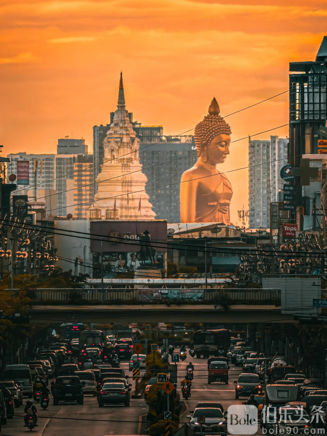 1. 水门寺大佛 机位:长焦镜头拍摄最佳 定位:Lat Ya Rd 天桥上,靠近 Somdet Chaopraya Hospital 小技巧:天桥视角能拍到完整佛像及周边建筑