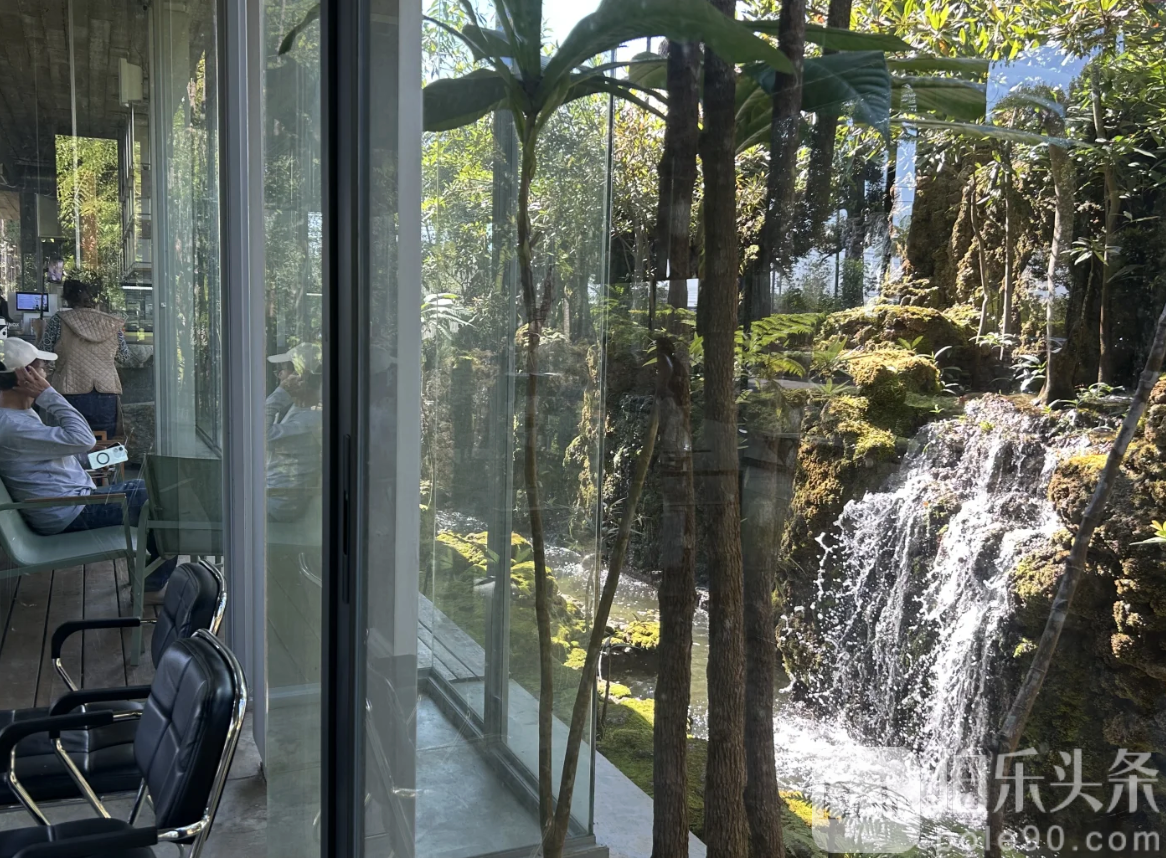 推荐游玩路线入口餐厅区域• 餐厅外墙是瀑布景观,环境清幽,非常适合喝饮品或用餐。• 人均消费约30人民币,性价比高。• 可先在餐厅拍照打卡,再慢慢进入园区游览。