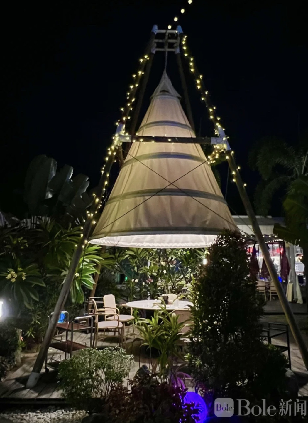 先说环境。是那种露营风+庭院感的设计,灯光一打,随手一拍都很出片。晚上还有乐队驻唱,氛围感直接拉到顶。如果怕热也不用担心,室内是有空调的,这点很加分。